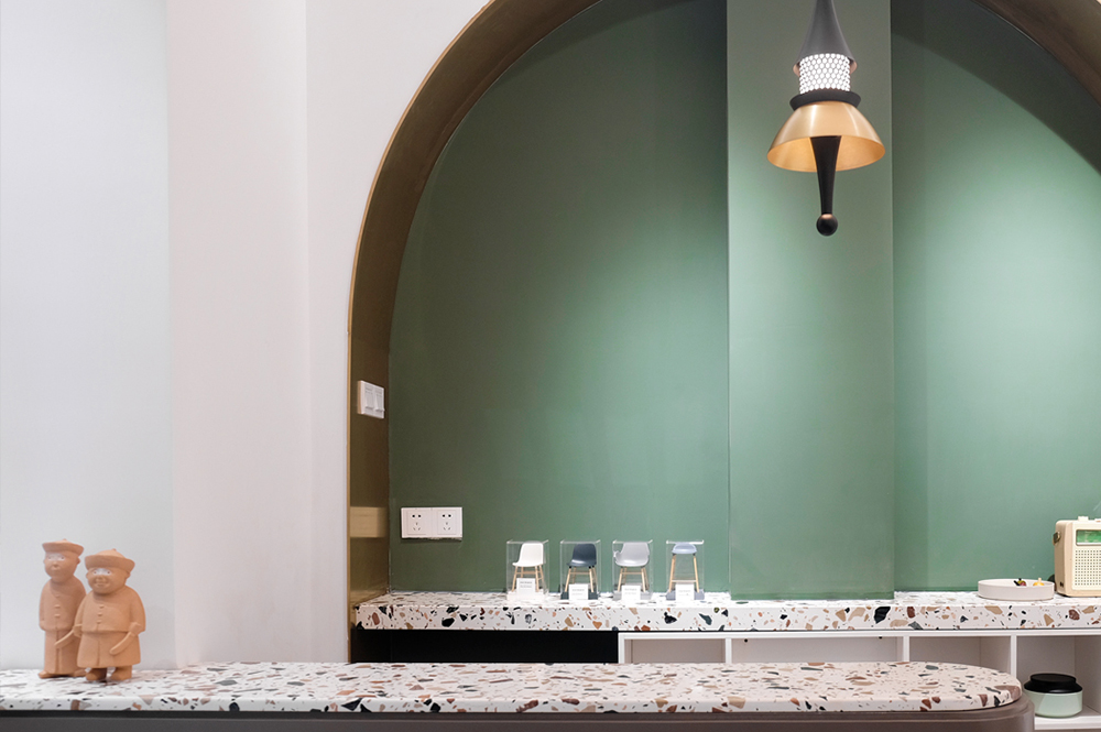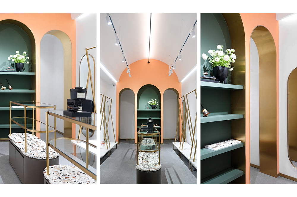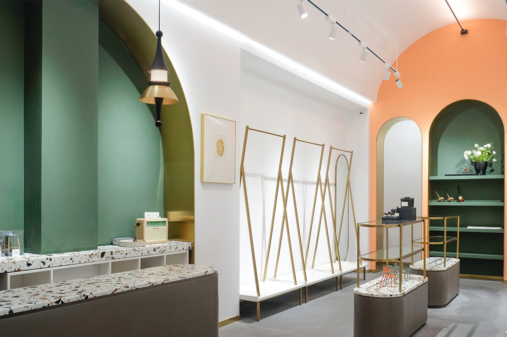 在保持一个简单、干净空间的条件下,审慎地使用暖橘色和墨绿补充,色彩的对比运用具有视觉上强烈的美感。装置和灯具都具有艺术感品质,并在低调的场所添加视觉戏剧。灯光照明对于眼睛的舒适度、对衣物的关注度都在专业化的灯光软件计算完成,每一处都是我们的心意。