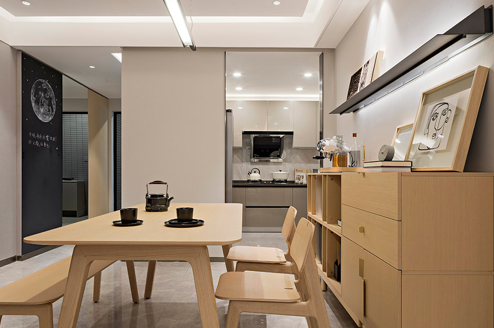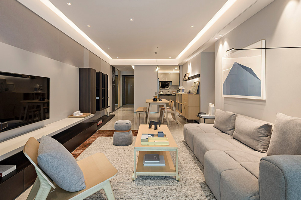 时代天韵项目位于广州中新知识城凤凰湖畔。设计师用现代的设计手法和材料,将室内的尺度不断打磨,以不同元素来表现空间的简约,同时亦有理性的归纳。不以奢华为主轴,但珍视人们在空间中的行走坐卧,在部分空间的功能陈设上模糊了界限,尝试释放空间更多的可能性。使整个住宅空间形成一个开放式的格局,增强居家成员之间的互动,以此对抗和抵消“城市生活的疏离感”。