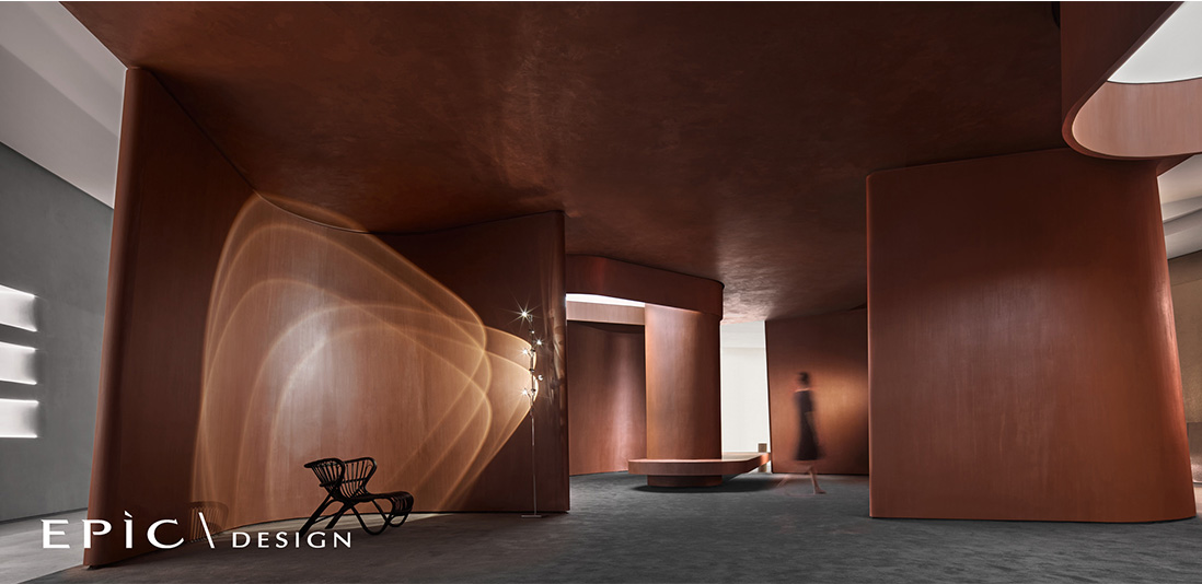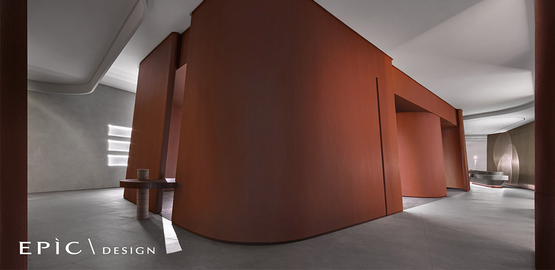 项目的设计灵感来源美丽的Antelope Canyon。设计师通过曲线的设计手法,以最基本的元素——线、面延伸到空间,旨在创建一种“峡谷之境”。位于展厅中间的展示空间,如同一个小型的峡谷,围而不合,赋予了空间独立性和关联性。在光与影之间,在虚与实之间,神秘、诱人、深邃,从而让观者可以自由、不设限地去探索和洞悉空间的真谛。