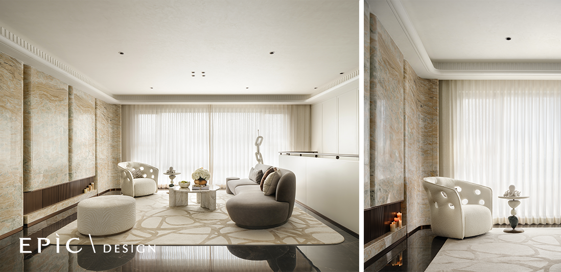 EPÌC设计团队撷取“津门雅韵”为精髓,将海河的包容气度与租界建筑的优雅基因融入空间叙事,通过材质肌理与光影的层叠对话,于津城文脉深处勾勒出当代栖居的美学意境。