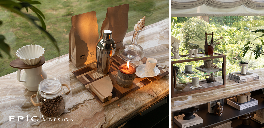 设计以折衷美学为精神锚点,打破风格界限,将现代简雅、自然野趣与艺术灵性交融共生。不拘于单一范式,让石材肌理与金属光泽低语,原木暖调共艺术装置呼吸,融入海岛度假松弛,亦含都会精英的美学坚持,实现「物理的诗意栖居」与「精神的自洽」双重维度的共鸣。